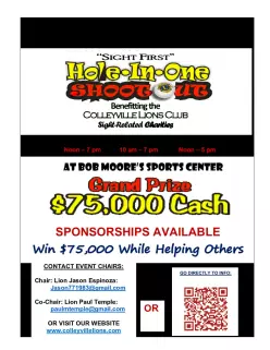 It’s that time of year again, and Colleyville Lions are gearing up for another exciting Hole-in-One Shootout. Get those Golf Clubs ready!! Save the Date on your calendars for a busy weekend, Lions.